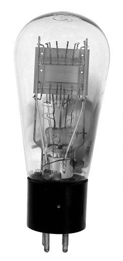 In November 1920, GE delivered the first tubes.  The UV201 was a high vacuum triode for use as an amplifier or oscillator and the UV200 was a gas filled triode intended as a detector.  The tubes were physically identical.  RCA would use the UV number and the tubes sent to Cunningham would be marked C301.  The amplifier tube used up to 135 volts at 3 ma on the plate and had a tungsten filament rated at 5 volts drawing 1 amp.  The detector used 45 volts on the plate and had the same filament.  During the first year of production, a worker at GE grabbed the wrong spool of wire used to make filaments and made some tubes with thoriated tungsten.  In testing, the tubes worked properly while only drawing .25 amps.   This was a major improvement and the new tubes were marked UV201A or C301A.  Sales improved.  After a few years the UV short pin tubes were replaced with the long pin UX bases.  This was an improvement in the electrical contacts and made the tubes easier to use in production radio sets.